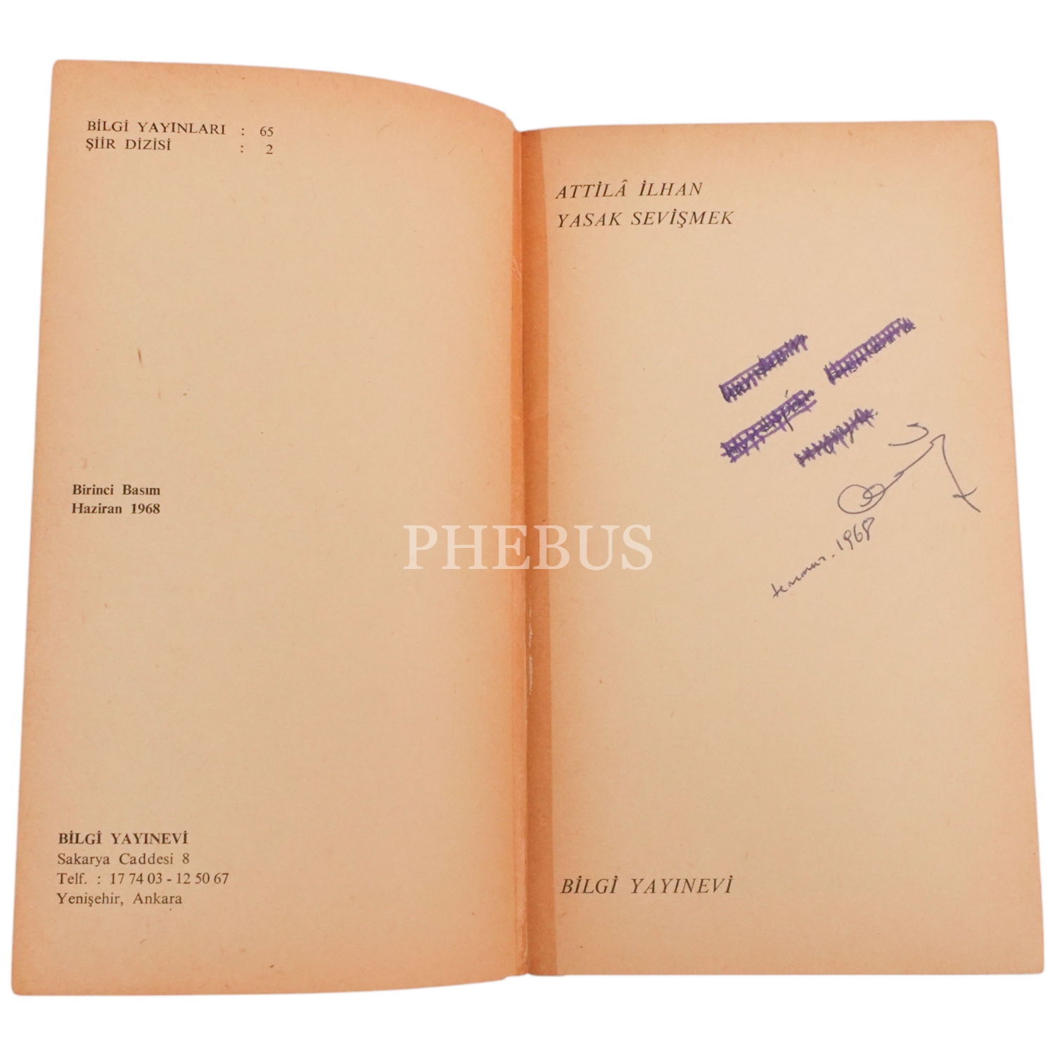 "Kubilay Köseoğlu´na selâm." ithafıyla, Nisan 1984 tarihinde imzalanan kitabın bir başka sayfasında, Attilâ İlhan tarafından Temmuz 1968 tarihinde imzalanmış ancak daha sonra üstü karalanmış bir ithaf yer almaktadır.