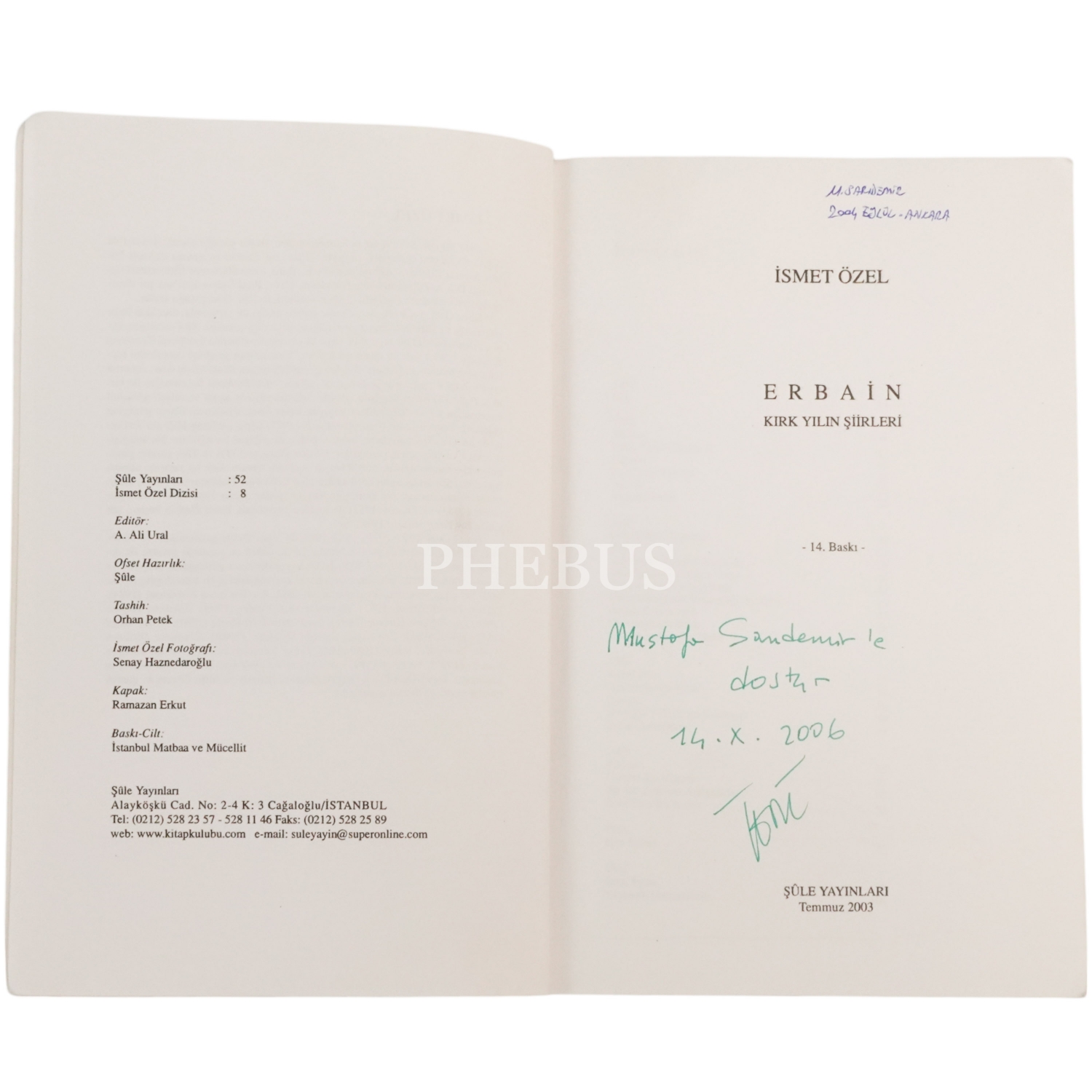 ERBAİN (Kırk Yılın Şiirleri), İsmet Özel, 2003, Şûle Yayınları, 238 sayfa, 14x21 cm...