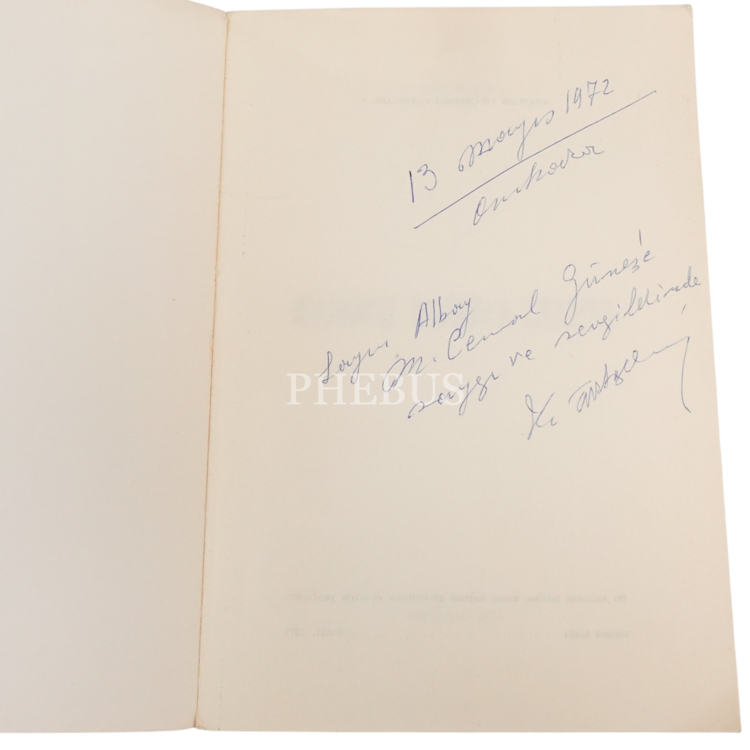 "Sayın Albay M. Cemal Güneş´e saygı ve sevgilerimle." ithafıyla, 13 Mayıs 1972 tarihinde imzalanmıştır.