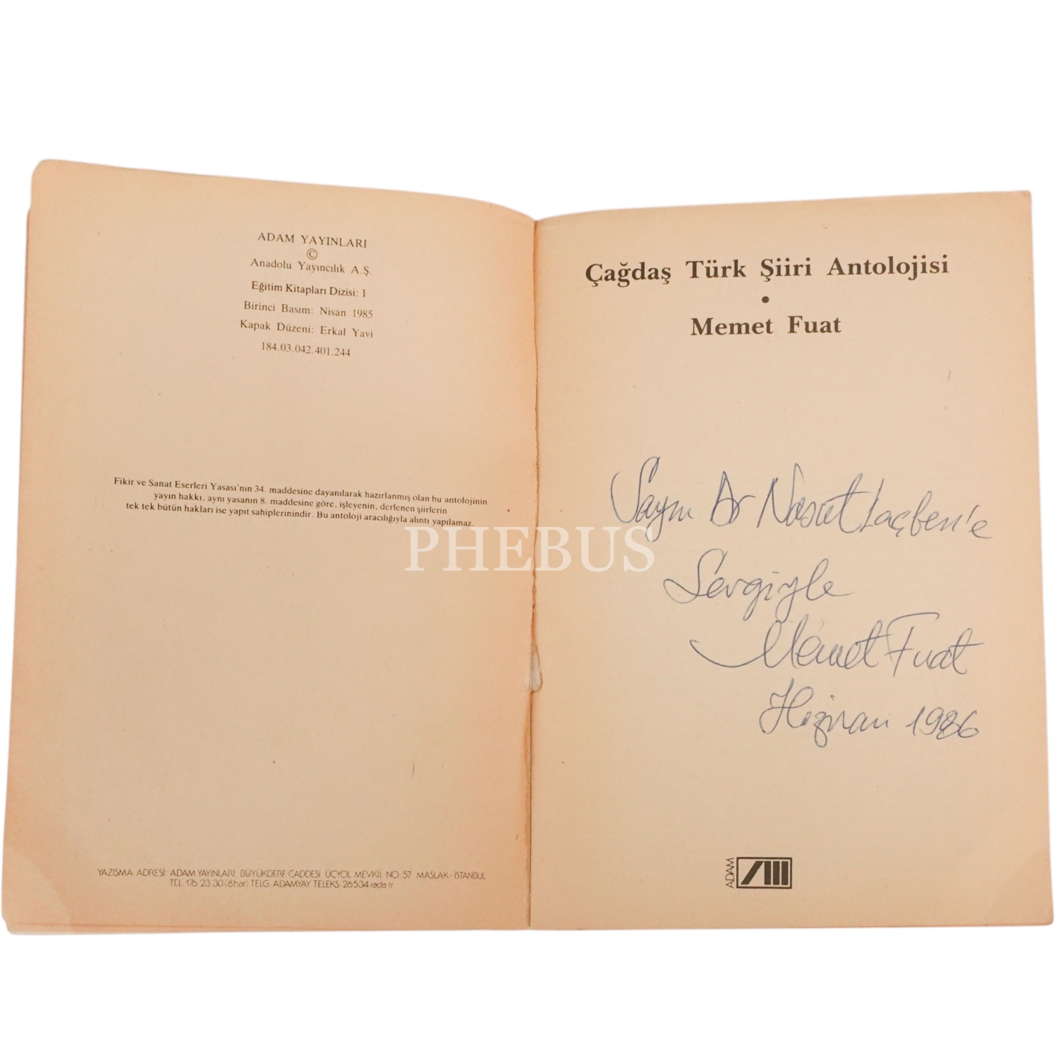 ÇAĞDAŞ TÜRK ŞİİRİ ANTOLOJİSİ, Memet Fuat, 1985, Adam Yayınları, 631 sayfa, 14x20 cm...