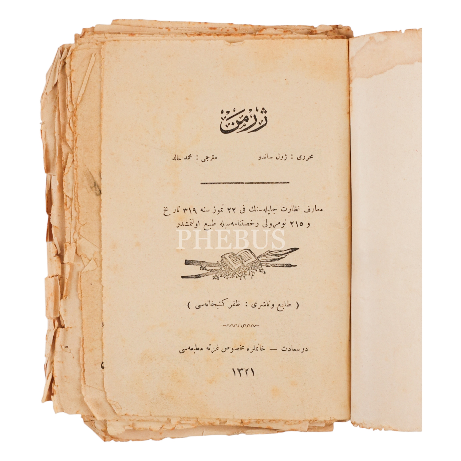 JERMİN, Jules Sandeau, çev.: Mehmed Halid, Hanımlara Mahsus Gazete Matbaası, 1321, 208 sayfa, 15x20 cm...