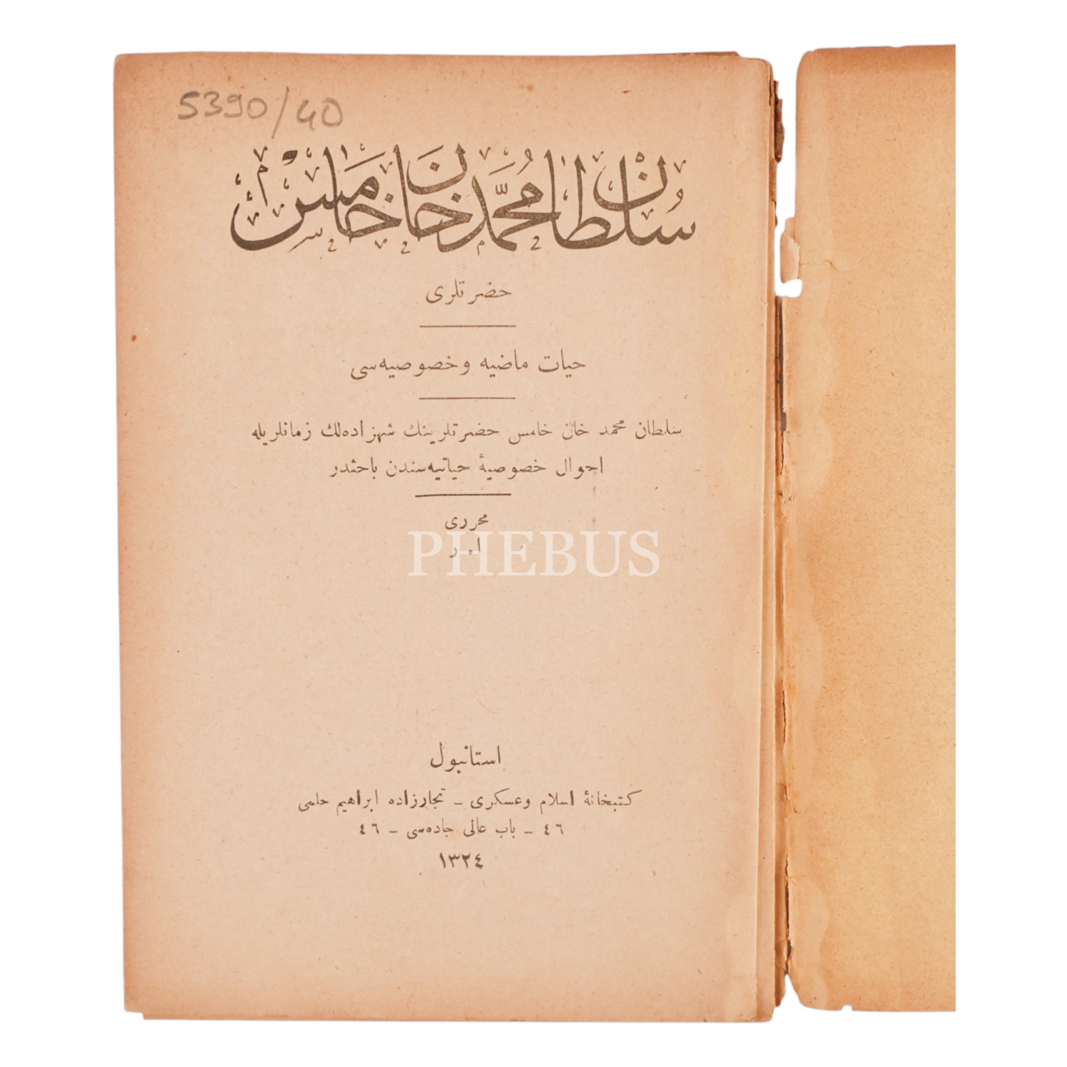 SULTAN MEHMED HAN-I HÂMİS HAZRETLERİ (HAYÂT-I MÂZİYE VE HUSÛSİYESİ, A. R. 1324, 32 sayfa, 12x18 cm...