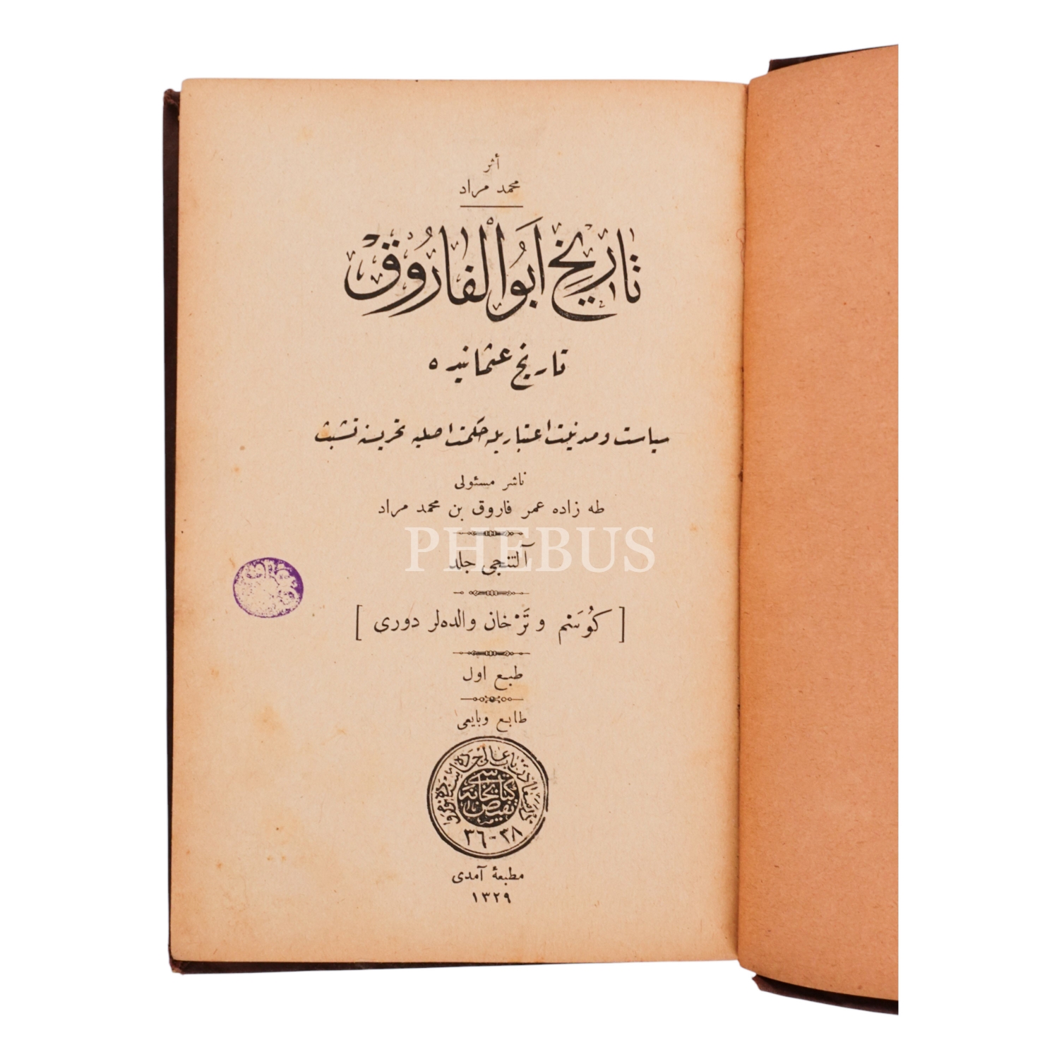 TÂRÎH-İ EBÜ´L-FÂRUK, (6. cilt), Mehmed Murad, Matbaa-i Âmidî, 1329, 373 sayfa, 14x19 cm...