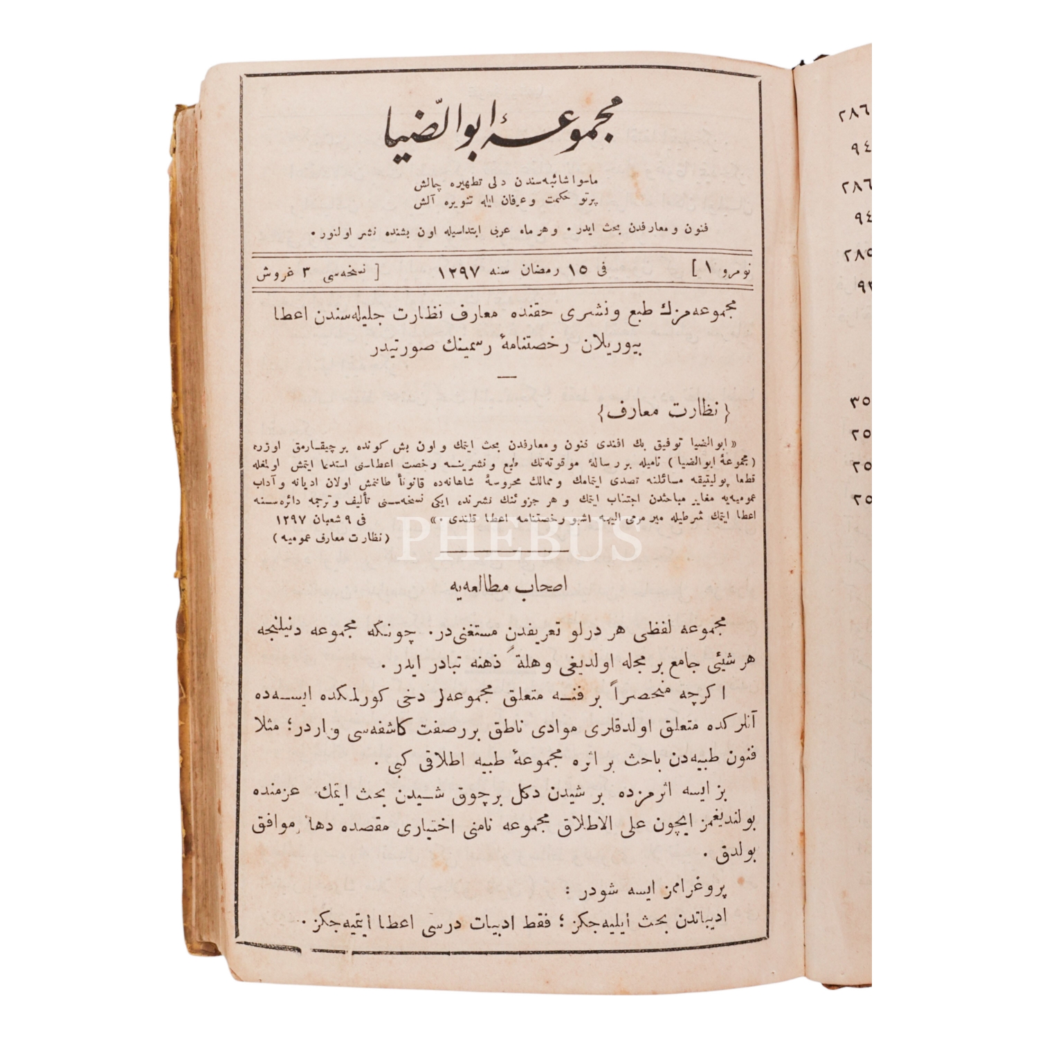MECMÛA-İ EBÜ´Z-ZİYÂ, (20 sayı tek ciltte), 1297-98, 640 sayfa, 13x20 cm...