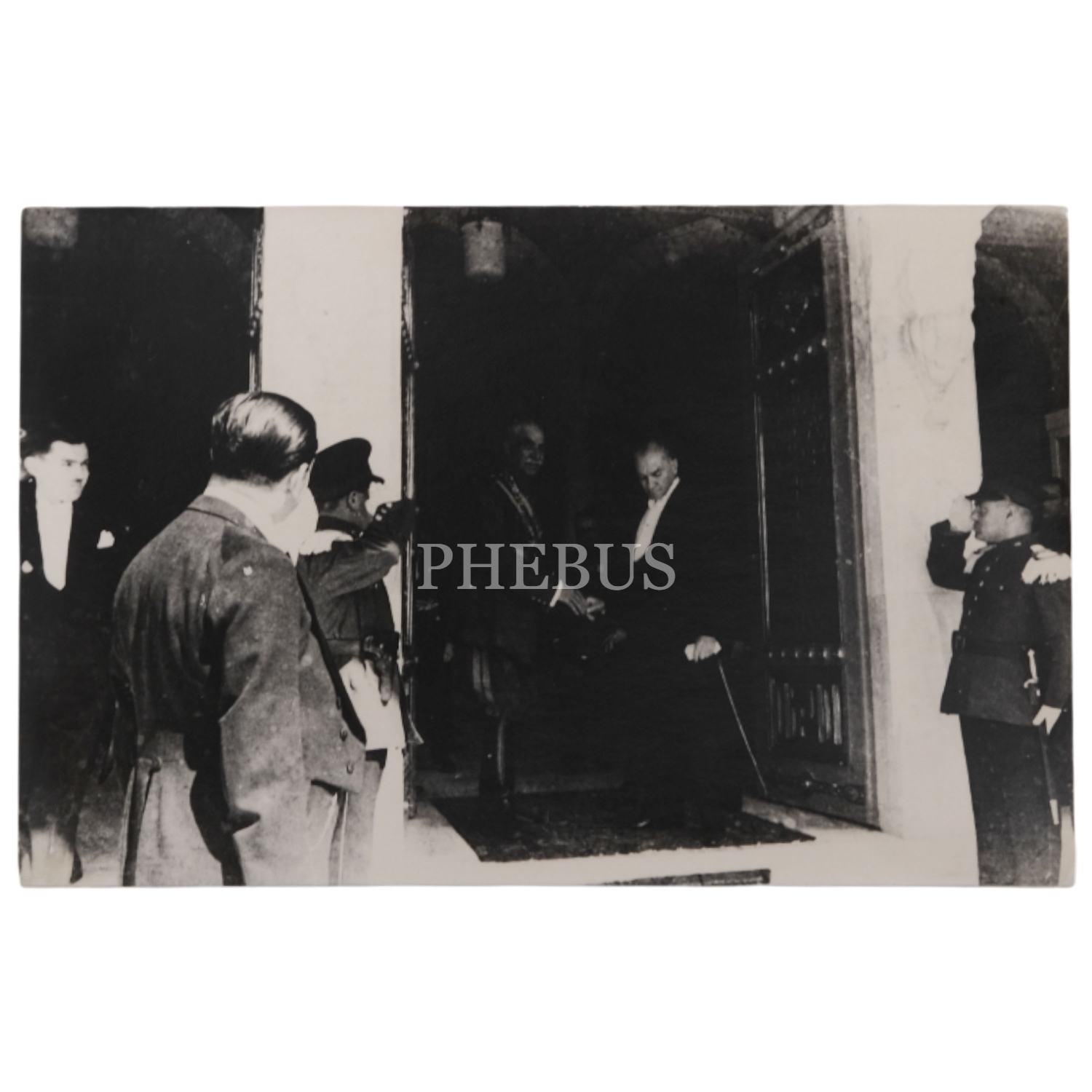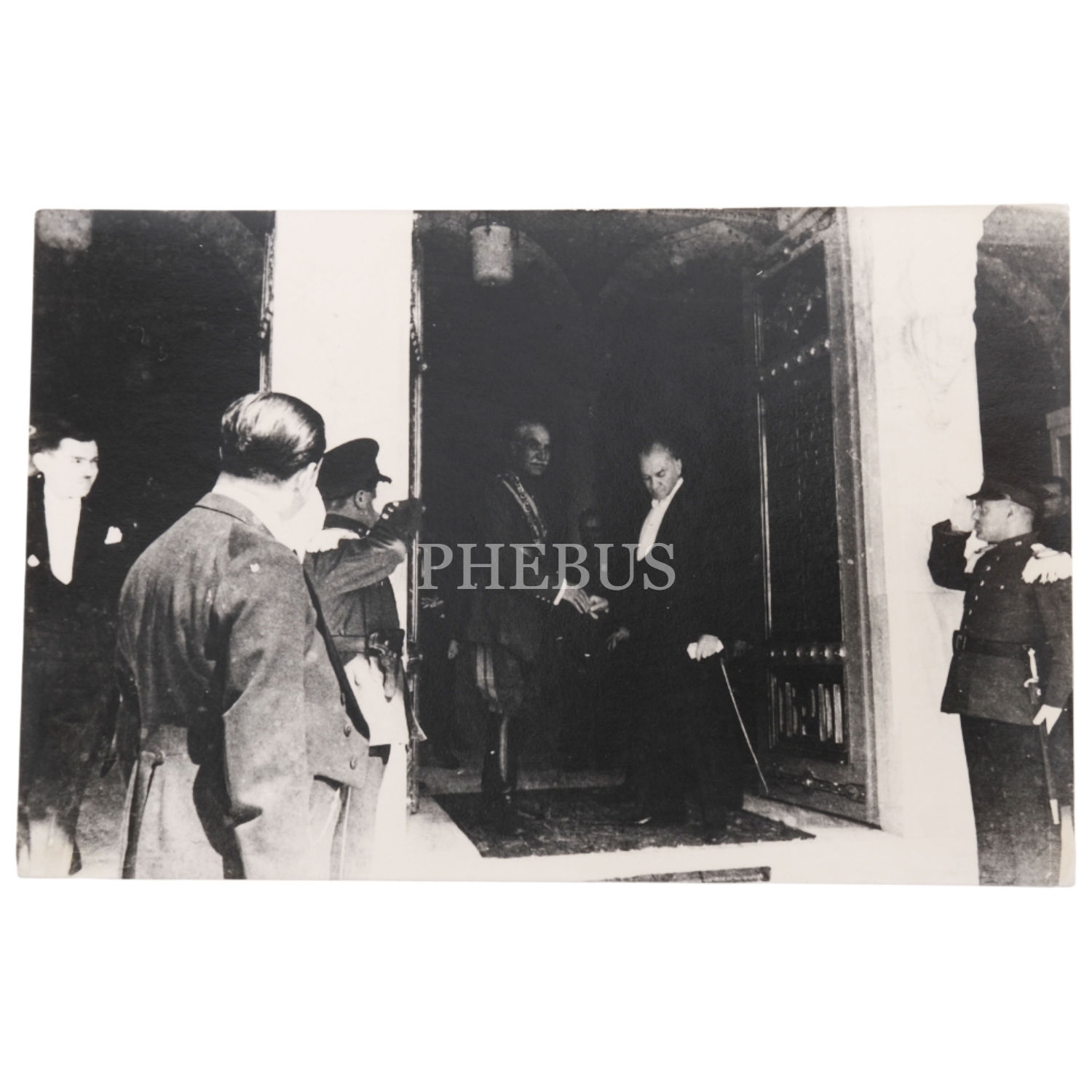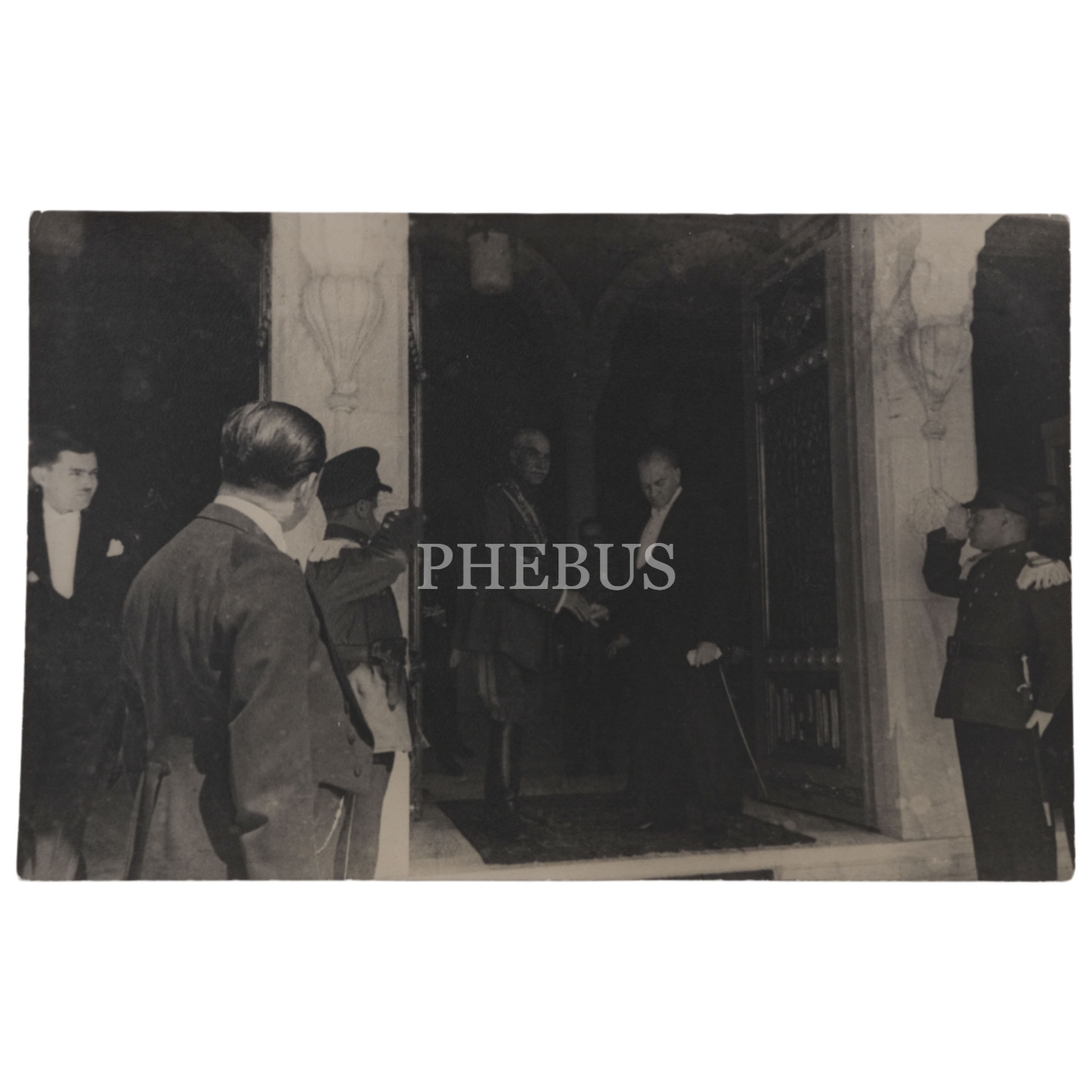 Mustafa Kemal Atatürk, Türkiye'yi ziyaret eden İran Şahı Rıza Pehlevi ile birlikte, Ankara Türk Ocağı'nda, 16-17 Haziran 1934, 9x14 cm boyutunda iki fotoğraf...