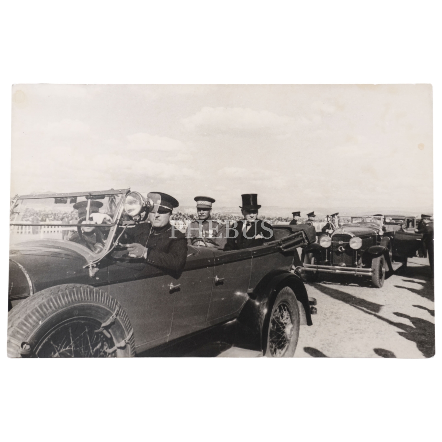 Mustafa Kemal Atatürk, Türkiye´yi ziyaret eden İran Şahı Rıza Pehlevi ile birlikte otomobilde, 17 Haziran 1934, Ankara Hipodrom, 14x9 cm...