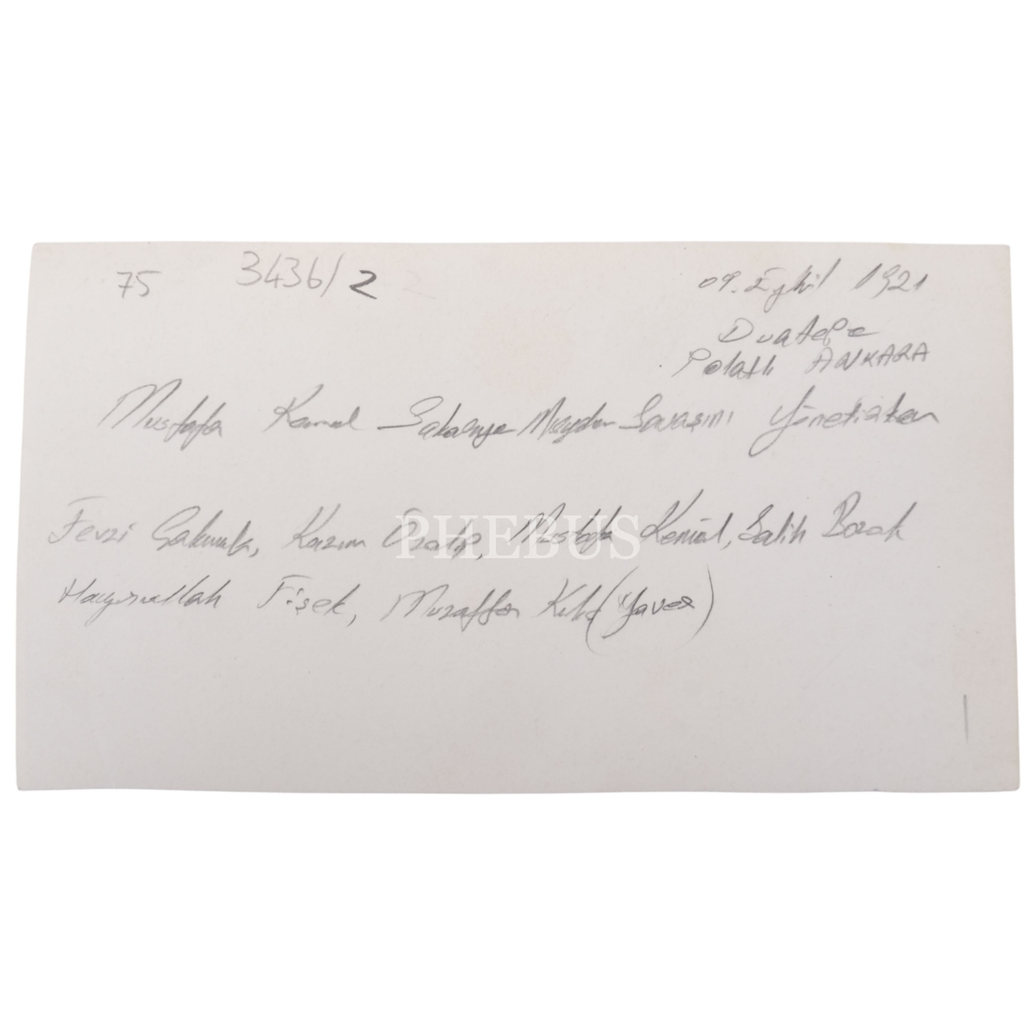 Milli Mücadele'nin önderleri, Duatepe üzerinde Sakarya Meydan Savaşı'nı yönetiyor, 9 Eylül 1921, 16x9 cm...