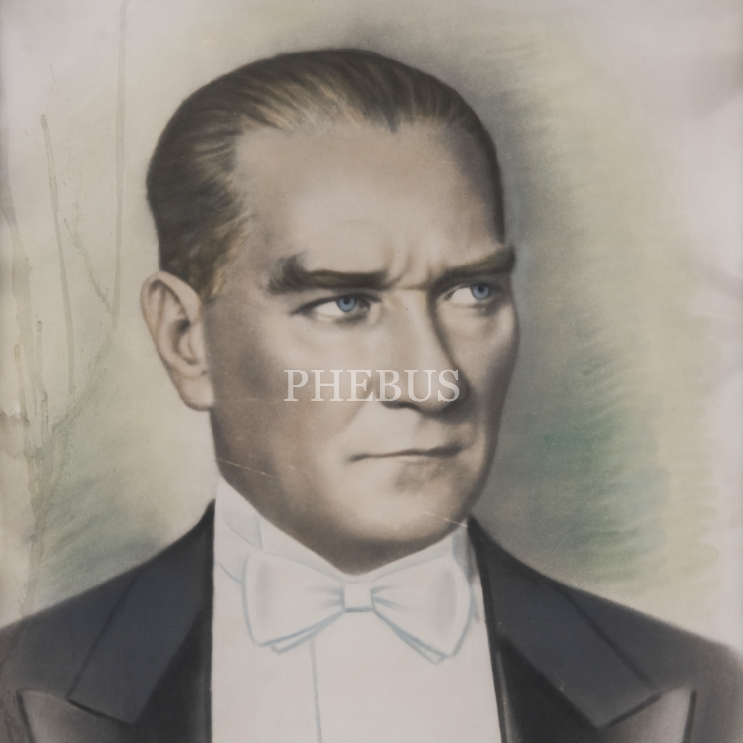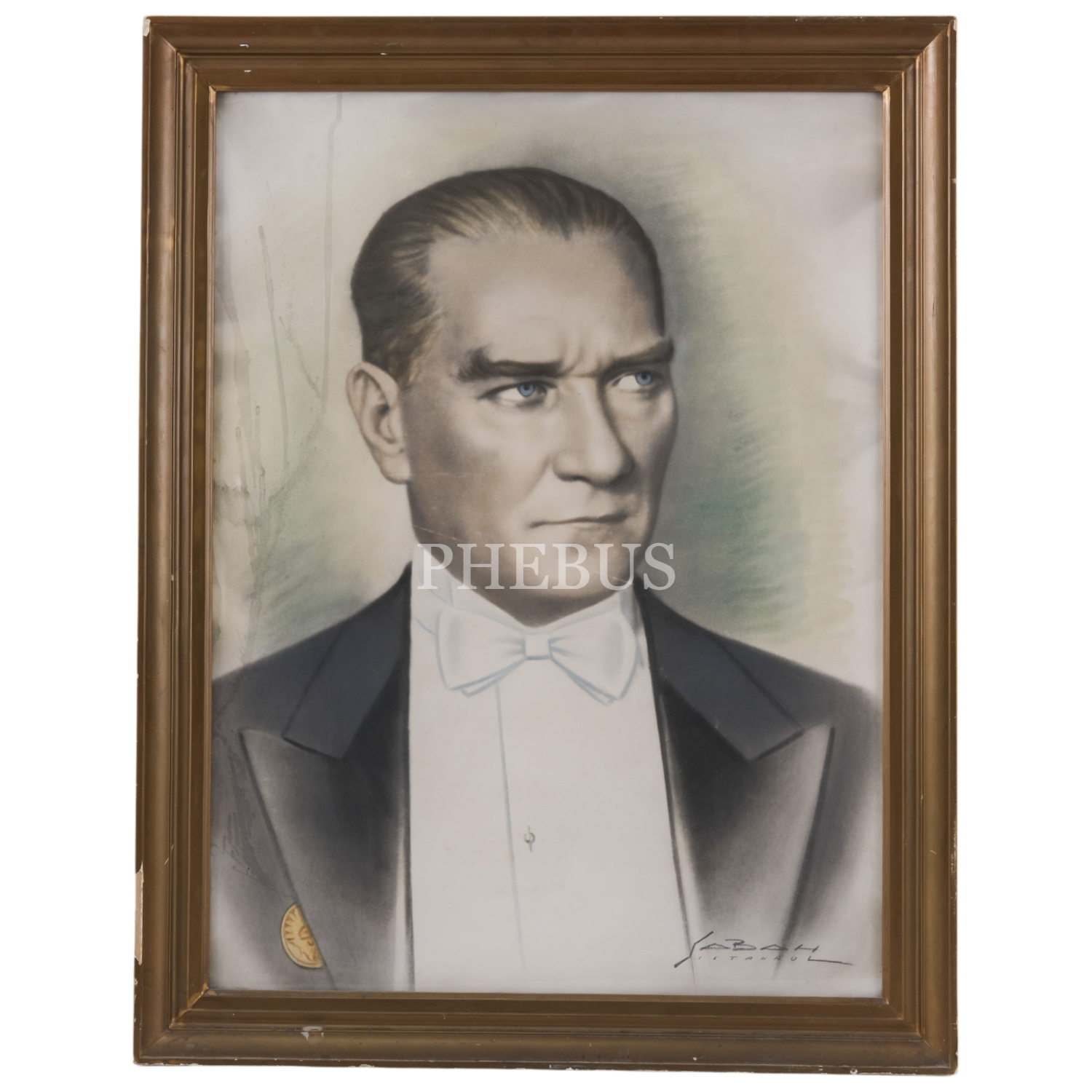 Mustafa Kemal Atatürk´ün İstiklâl Madalyası ile resmedildiği, Foto Sabah ıslak imzalı portre fotoğrafı, çerçevesiyle birlikte 68,5x88 cm...