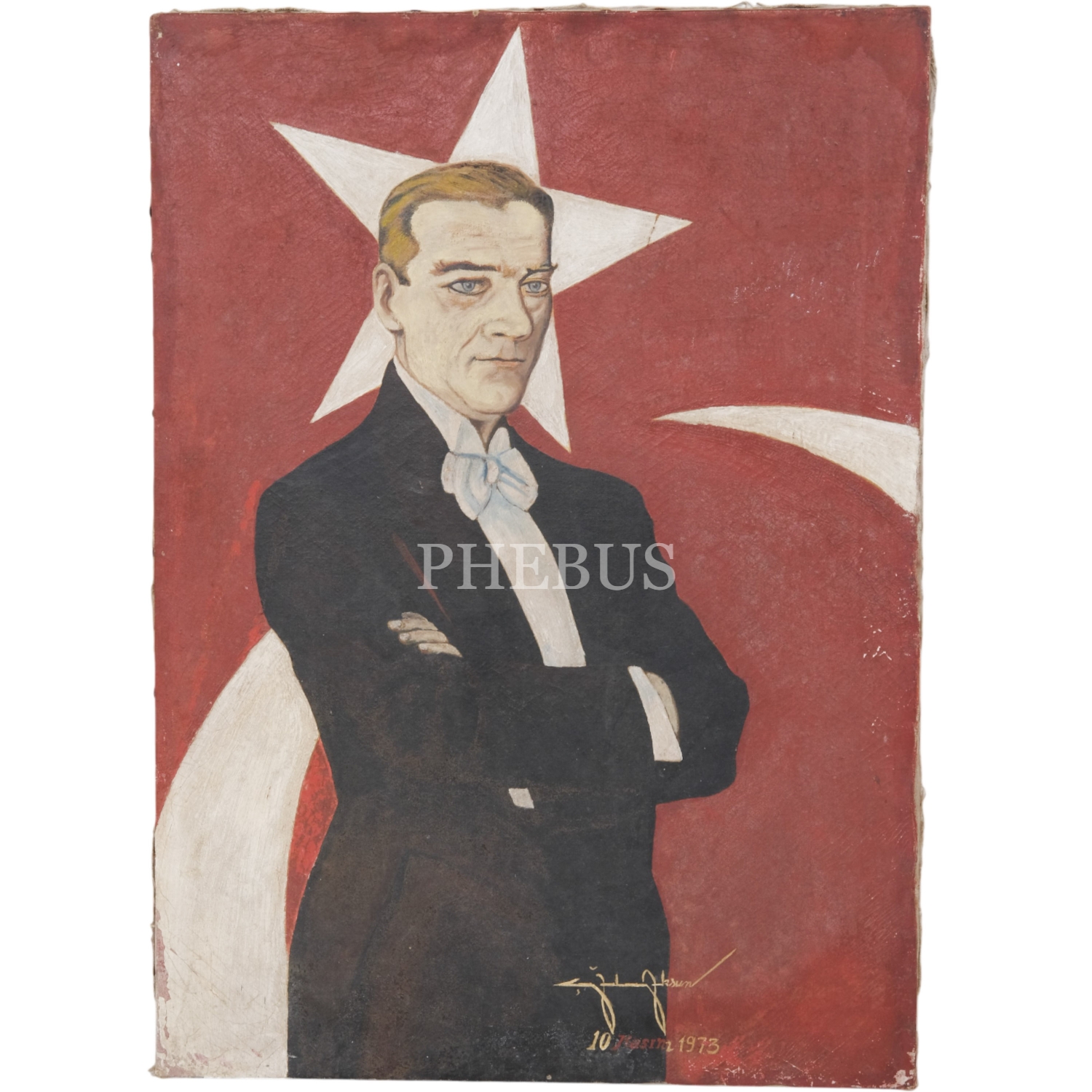 Sanatçı imzalı ve 10 Kasım 1973 tarihli Mustafa Kemal Atatürk tablosu, tuval üzerine yağlı boya, 50x70 cm...
