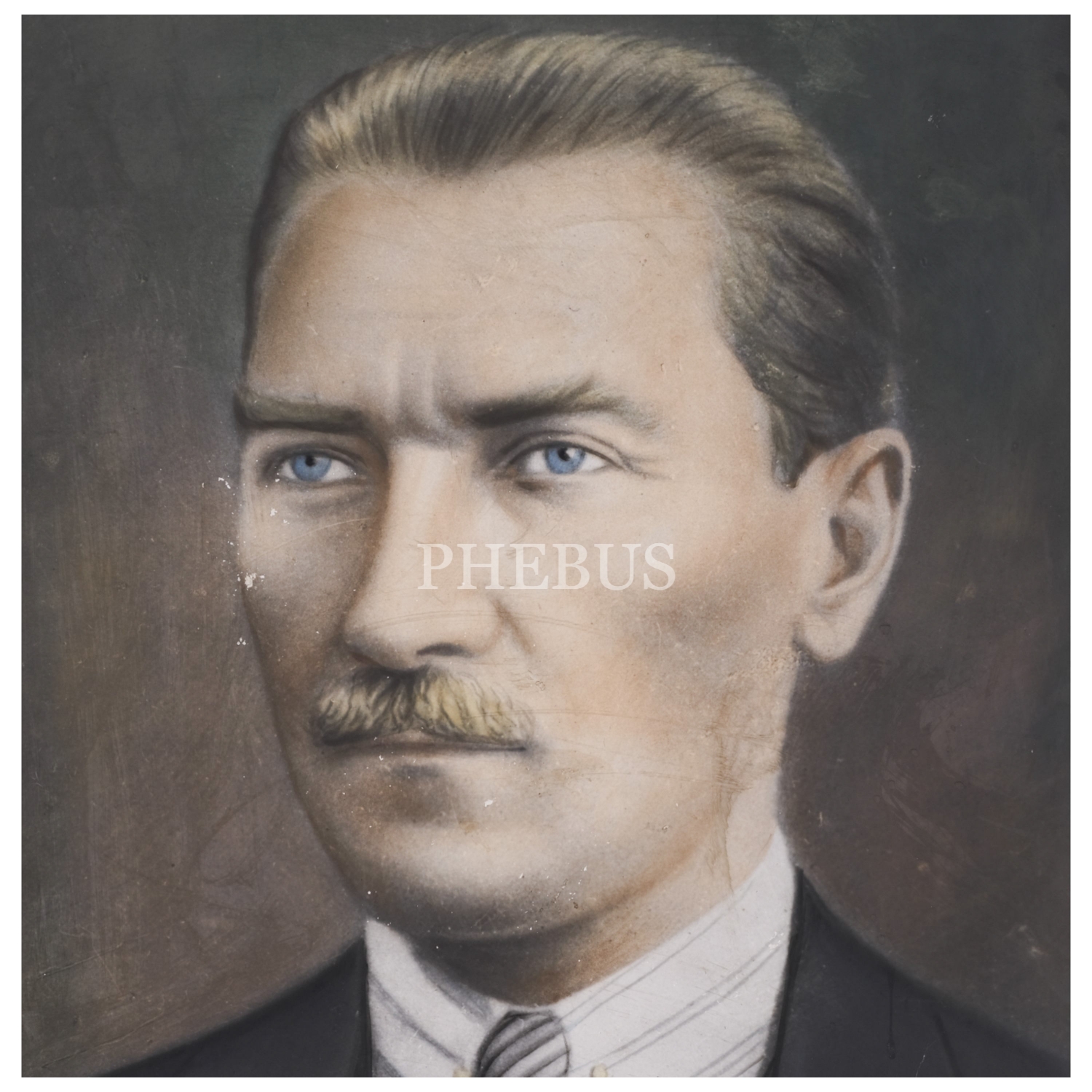 Mustafa Kemal Atatürk'ün elle renklendirilmiş bir portresinin, büyük boy fotoğraf baskısı, çerçevesiyle birlikte 82x114 cm...